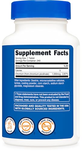 Nutricost Chromium 1000mcg, 240 Tablets – Gluten Free, Non-GMO