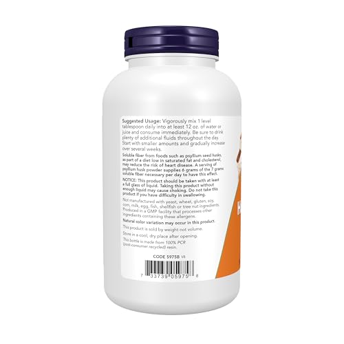 NOW Foods Supplements, Psyllium Husk Powder, Non-GMO Project Verified, Soluble Fiber, 12-Ounce
